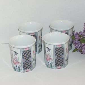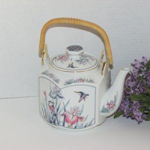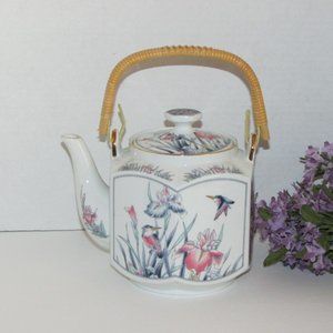 Vintage Tea Set Iris & Hummingbirds Teapot 4 Mugs Japan Cottagecore Cabincore