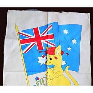 Vintage Tea Towel Souvenir Australia Waltzing Matilda Kangaroo