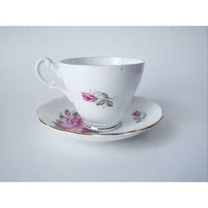 For your consideration is a vintage Royal Ascot teacup and saucer with a pink rose design, circa 1950's.