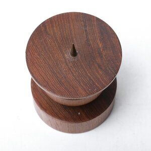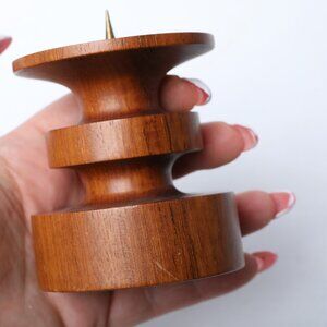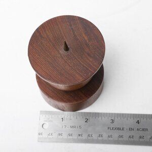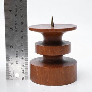 Vintage Teak Wood Brass Pillar Candle Stand Brown Mid Century Decor