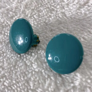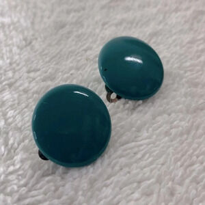 Vintage Teal Painted Metal Circle Clip On Earrings