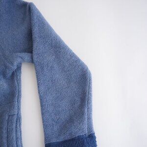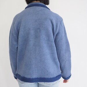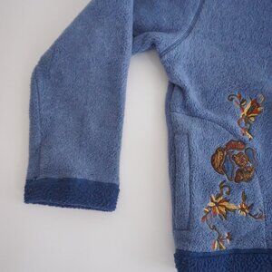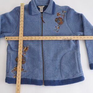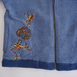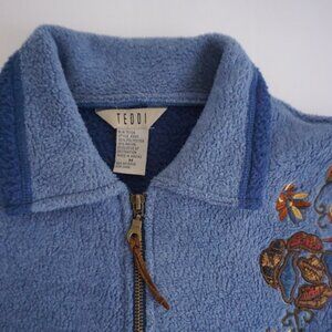 Vintage Teddi Blue Embroidered Floral Zip-Up Fleece Jacket Cozy Cabincore M
