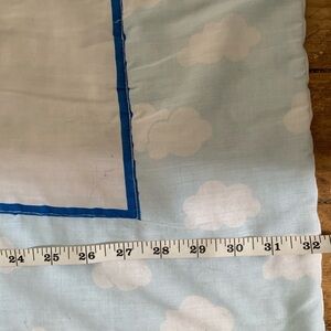 Vintage teddy bear baby crib blanket pictures teddy bears in a hot air balloon. Has some marks on one of the corners