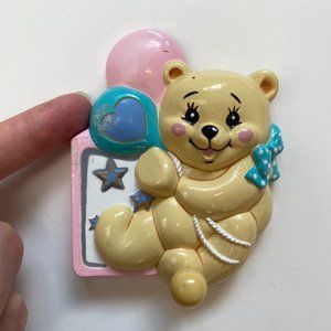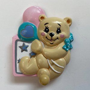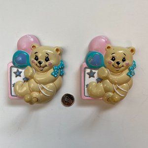Vintage Teddy Bear w Balloons Plastic Hooks, Newborn Baby Nursery, Kids Bedroom