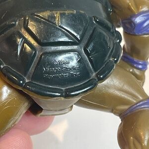 The action figure in the image is a vintage 1988 Donatello from the Teenage Mutant Ninja Turtles line by Playmates Toys