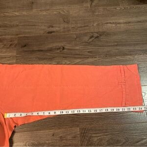 Super cute cropped style with a bit of a wide leg , button waist zipper fly .