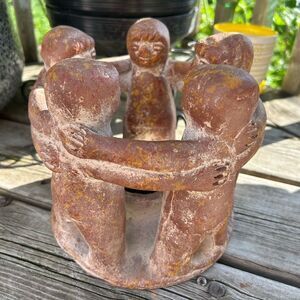 Vintage Terracotta Brown Circle of Friends Candle Holder Sculpture