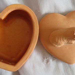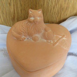 *Vintage* Terracotta Heart Shaped CAT Trinket Box (F52)
