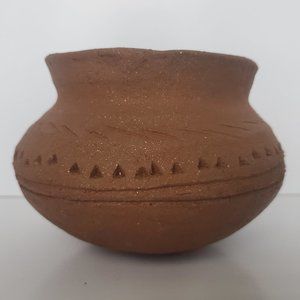 Vintage Terracotta Pottery Vessel Bowl Southwestern Geometric Navajo Design Boho