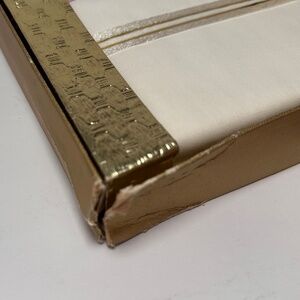 This stunning set features a delicate purple rose floral pattern on crisp white cotton — classic, romantic, and very mid-century. The sheets are still new in original presentation box, complete with decorative ribbon. A true time capsule piece!