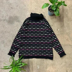 Vintage Textured 3D Print Striped Turtleneck Sweater Medium