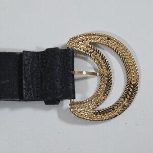 Vintage Textured Belt Womens L Black Gold Black Tone Metal Buckle Whimsigoth Y2K