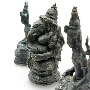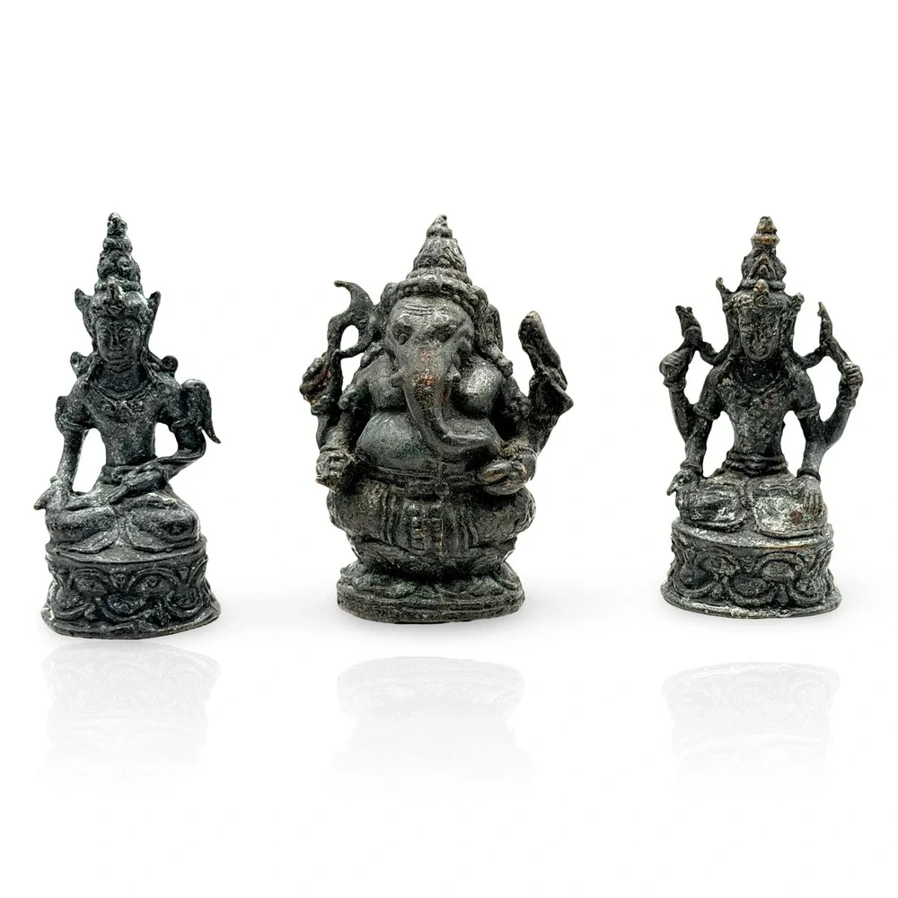 Vintage Thai Bronze Ganesha Vishnu Deity Statue Set 4" Sacred Altar Thailand