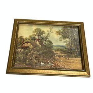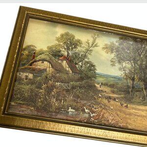 Vintage Thatched Cottage Chickens Ducks Pond Countryside Picture