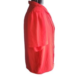 Vintage The Bay bright red button front blouse. Perfect for any occasion with its stylish design. Has small padded shoulders and pleat detailing along front.