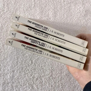 Good vintage condition. Signs of wear shown in pics. Please look at all pics and zoom in for a closer view. Inside pages may contain notes, highlighting, creasing and/or other minor signs of use. Vintage The Gunsmith All Action Western Romance Novel x4 US