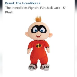 It's everyone's favorite Super baby, jack jack The Disney Pixar incredible 2 fighting' Fun jack jack plush comes dressed in his signature hero outfit from the film and features fun sounds, lights and movement Press jack jack's hand and his eyes Will light up at random as he walks and waves his arms up and down Jack jack baby sound effects from the movie can also be heard as he walks The perfect gift for every incredible 2 fan Ages 3+