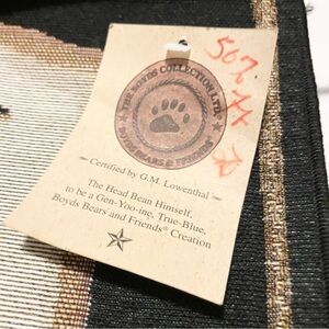 It is pre-owned and in used condition. It has the tag attached which has some writing on it. Please see all photos for exact item.