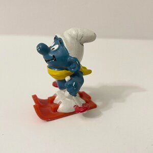 Vintage The Smurfs Skier Smurf Snow Skiing Ski Poles Toy Figurine