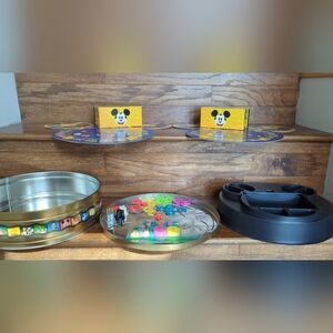 Vintage The Wonderful World of Disney Trivia Game by Mattel 1997 in a round metal tin. This includes an extra game board, second card set and extra parts from a second set we owned. The game has printed instructions and is missing 1 purple chip. With the 2 boards and two card boxes the adults and kids can split up and play separately or you can have up to 8 players if you wish!