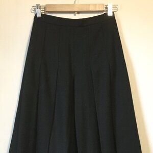 Very good vintage preowned condition, thick, black, pleated, wool culottes. These are such lovely culottes. They are so beautiful, but they are sadly too small around the waist for me. Otherwise, they are very comfortable and are lined to prevent static cling. High quality weight and wool. Dense, like a boiled wool. I would recommend a 26" waist.