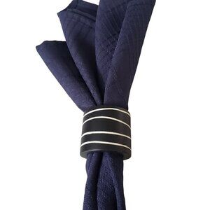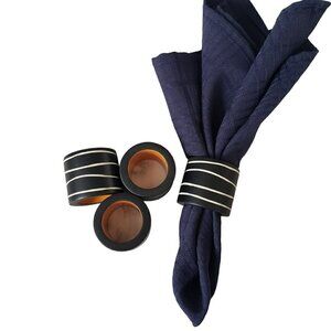 Vintage Thick Wooden Round Napkin Rings Black with White Stripes Set of 4 MCM