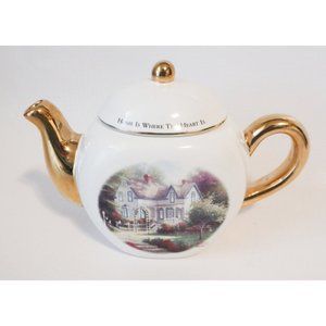For your consideration is a Thomas Kinkade small teapot - Home Is Where The Heart Is - Teleflora, circa 1980's.
