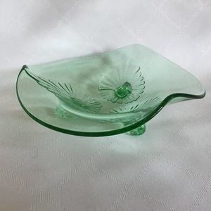 Vintage Three Legged Light Green Glass Candy / Trinket / Display Dish