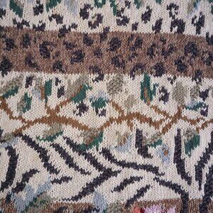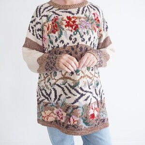 Vintage Tiara Cream Brown Knit Floral Knit Cotton Blend Crewneck Sweater XL