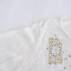 Vintage Tiara Cream Ugly Christmas Beaded Reindeer Zip Up Cardigan Sweater XL