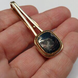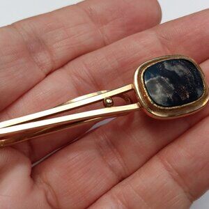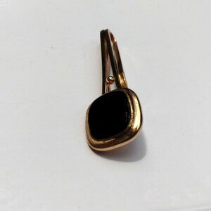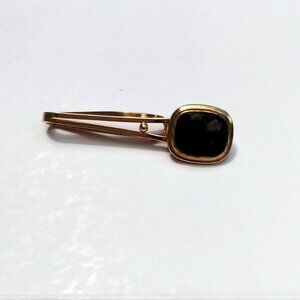 Vintage Tie Bar Clip Slide Gold Tone Black Sparkle Dapper