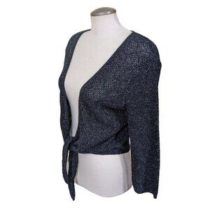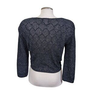 Vintage Tie Front Sweater Shrug Cardigan Womens M Black Sparkle Made In Canada