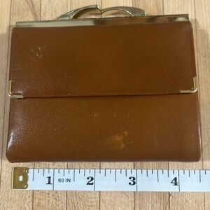 Vintage Tilley Cognac Brown Genuine Leather Wallet Bifold Brass Kiss Clasp. See photos for compartments.