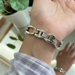 Vintage Women’s Stainless steel Silver and gold tone watch with rhinestone accents 🤭🫶