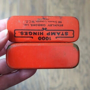 Cute little Vintage Tin. Originally sold by Stanley Gibbons Ltd and contained 1000 stamp hinges. This is from my Father's things.