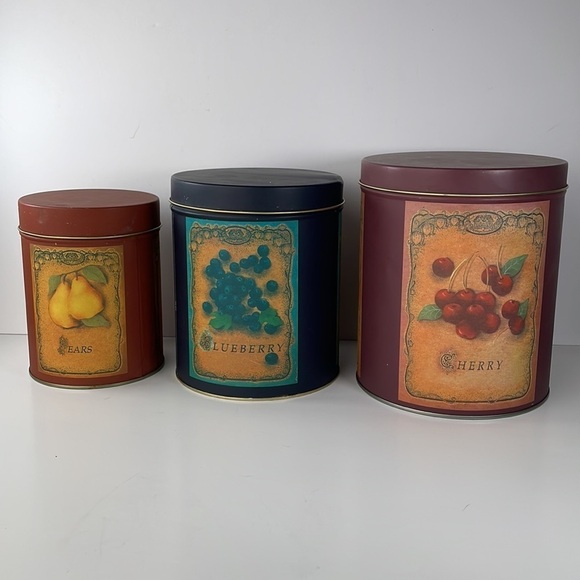 Vintage Tin Canisters Set of 3 Fruit Pictures