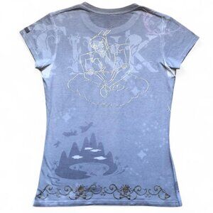 ❀˖° vintage early 2010s official DISNEY PARKS TINKERBELL PETER PAN aop all over print skulls filigree fairycore grunge graphic t-shirt⋆.ೃ࿔*:・