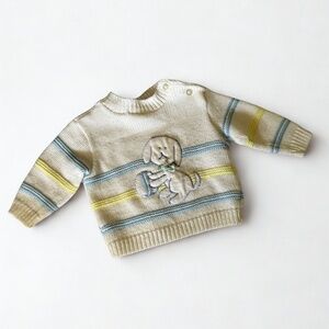 Vintage baby sweater / knit toddler top / Tiny Tots Signature sweater / puppy motif baby sweater / cream knit baby clothes / 12–18 month sweater / vintage made in Canada baby clothes / retro baby knitwear / acrylic baby sweater / dog applique sweater / baby shower gift / gender neutral baby sweater