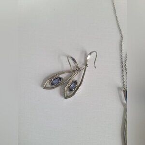 Vintage Tocara Montreal Sterling Silver Blue Crystal Drop Earrings Necklace