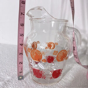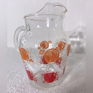 Vintage Tomato Orange Fruit Print Glass Pitcher