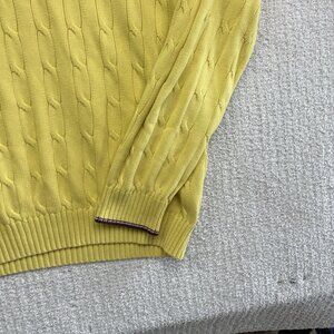 Vintage Tommy Hilfiger Cable Knit Sweater Yellow Men XL Preppy Grandpa Pullover