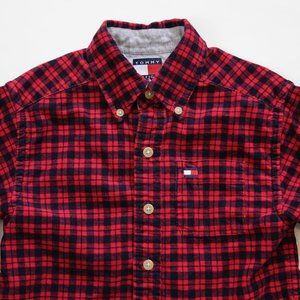 Vintage Tommy Hilfiger Corduroy Plaid Gingham Collared Button Down Shirt, Kids 4