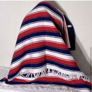Vintage Tommy Hilfiger Red White Blue Woven Cotton Blanket Beach Blanket