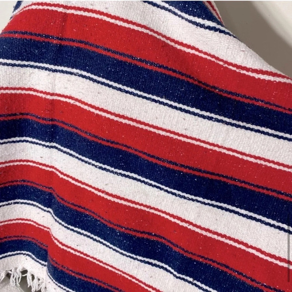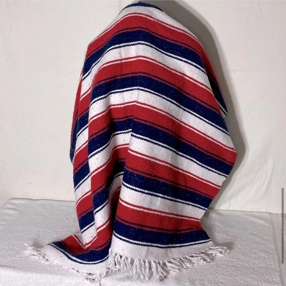 Vintage Tommy Hilfiger Red White Blue Woven Cotton Blanket Beach Blanket