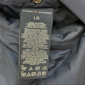 This amazing retro puffer vest by Tommy Hilfiger is reversible with navy blue on one side, and bright yellow on the other. This vest is in like new condition, men's size large.