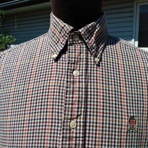 Vintage Tommy Hilfiger Shirt Brown Checked Retro 80s 90s Made in Taiwan Medium