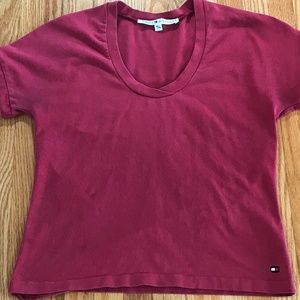 Vintage Tommy Hilfiger Women’s Form Fitting Red Short Sleeved T-Shirt With Scoop