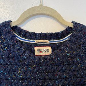 Vintage Tommy Hilfiger Wool Blend Knit Sweater, Speckled Navy Blue, US XL