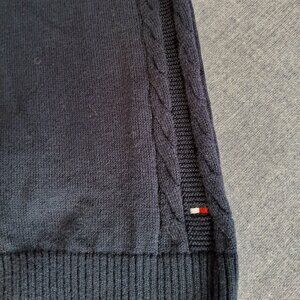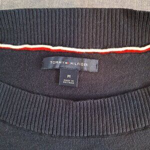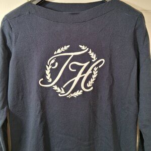 Tommy Hilfiger women's vintage lightweight navy blue sweater with white logo.