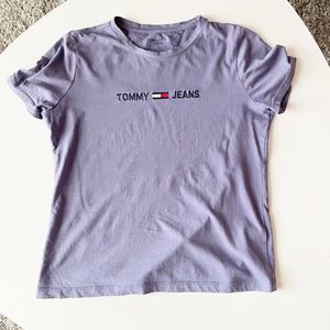 Vintage Tommy Jeans Box Logo embroidered t-shirt. Size small. Colour is a light blue/purple shade. Normal signs of wear. Meant to fit oversized.